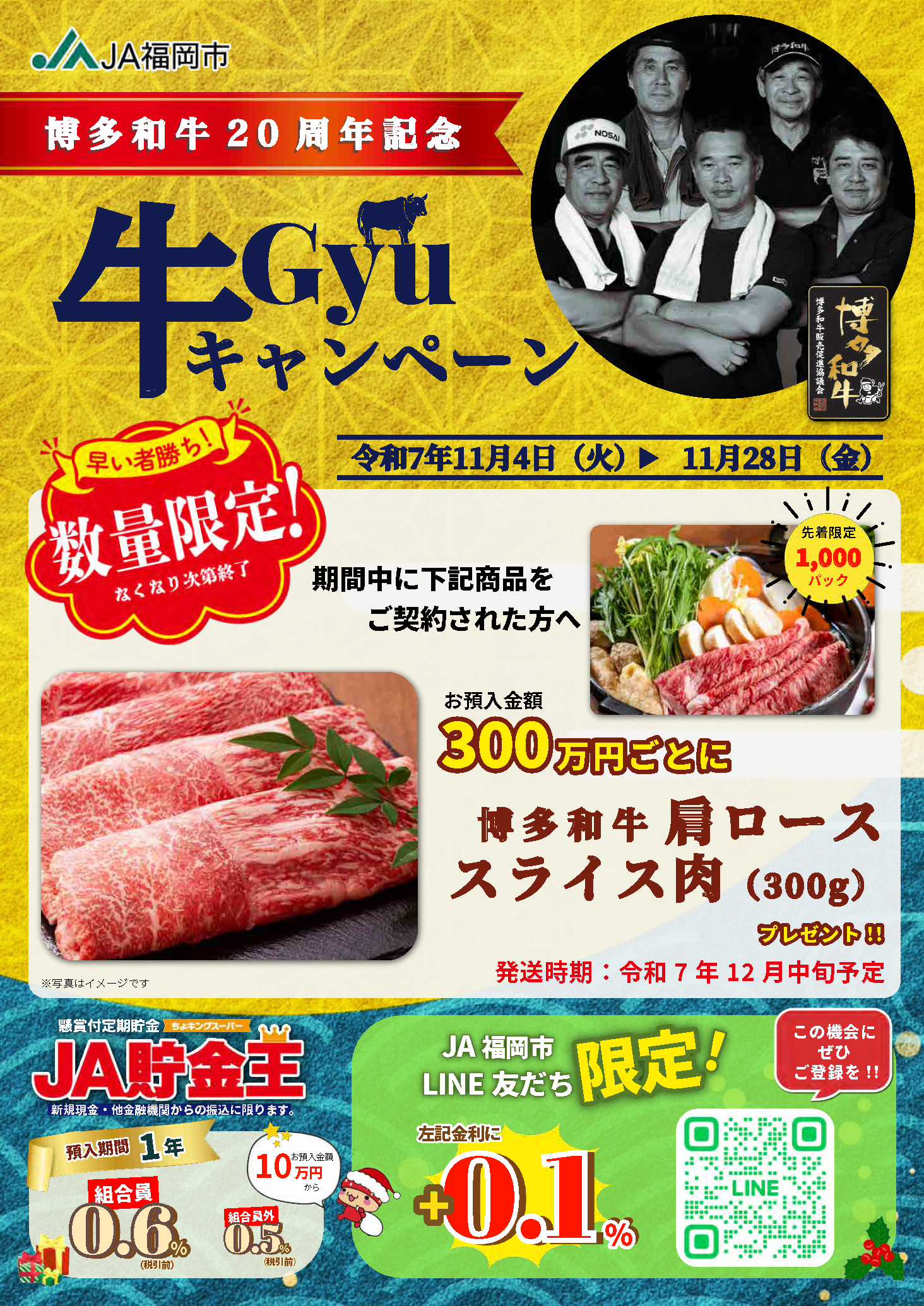 ※さらに・・・JA福岡市公式LINEにご登録の方は+0.1!!
