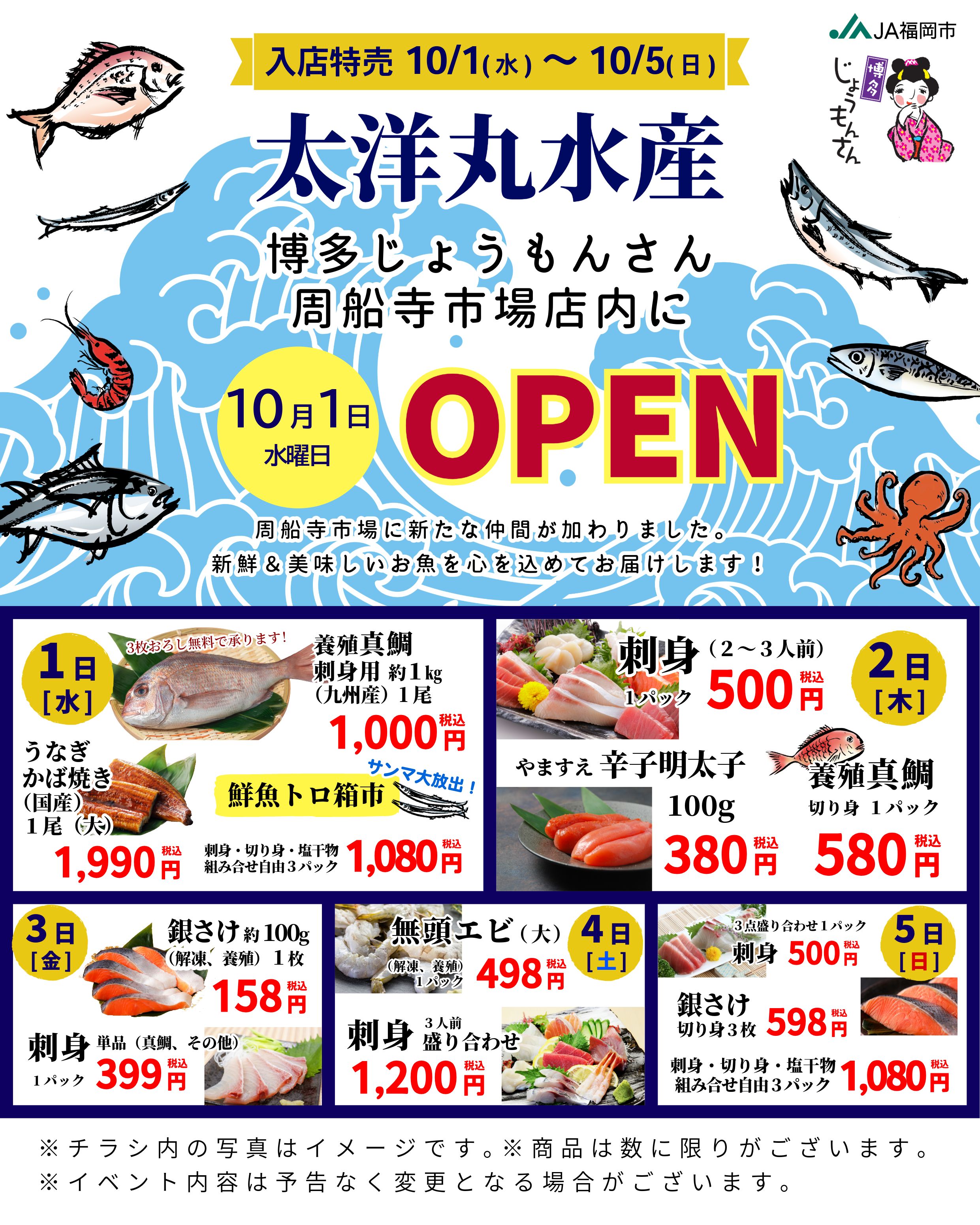 新たに鮮魚テナントとして「太洋丸水産」が10月1日(水)に入店しました!