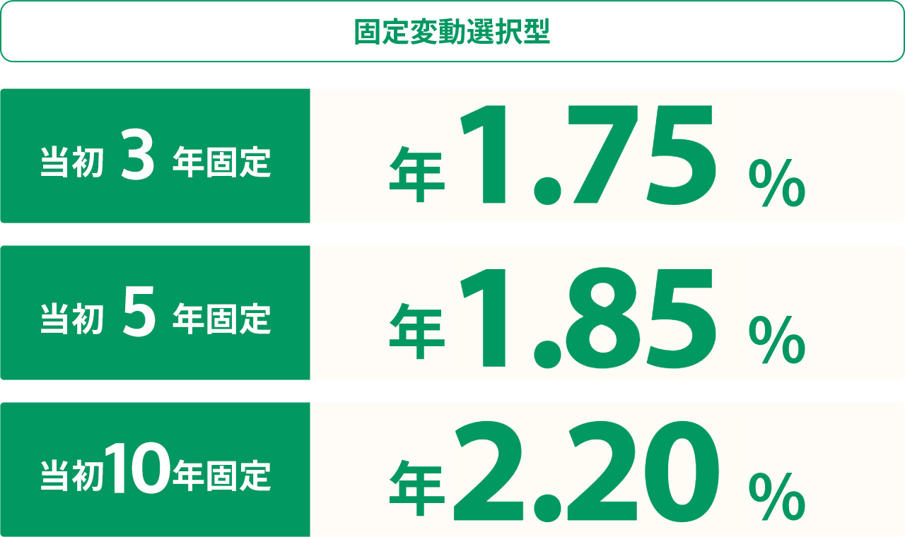 | 固定変動選択型 | 3年固定: 3.55%、5年固定: 3.70%、10年固定: 3.90% |